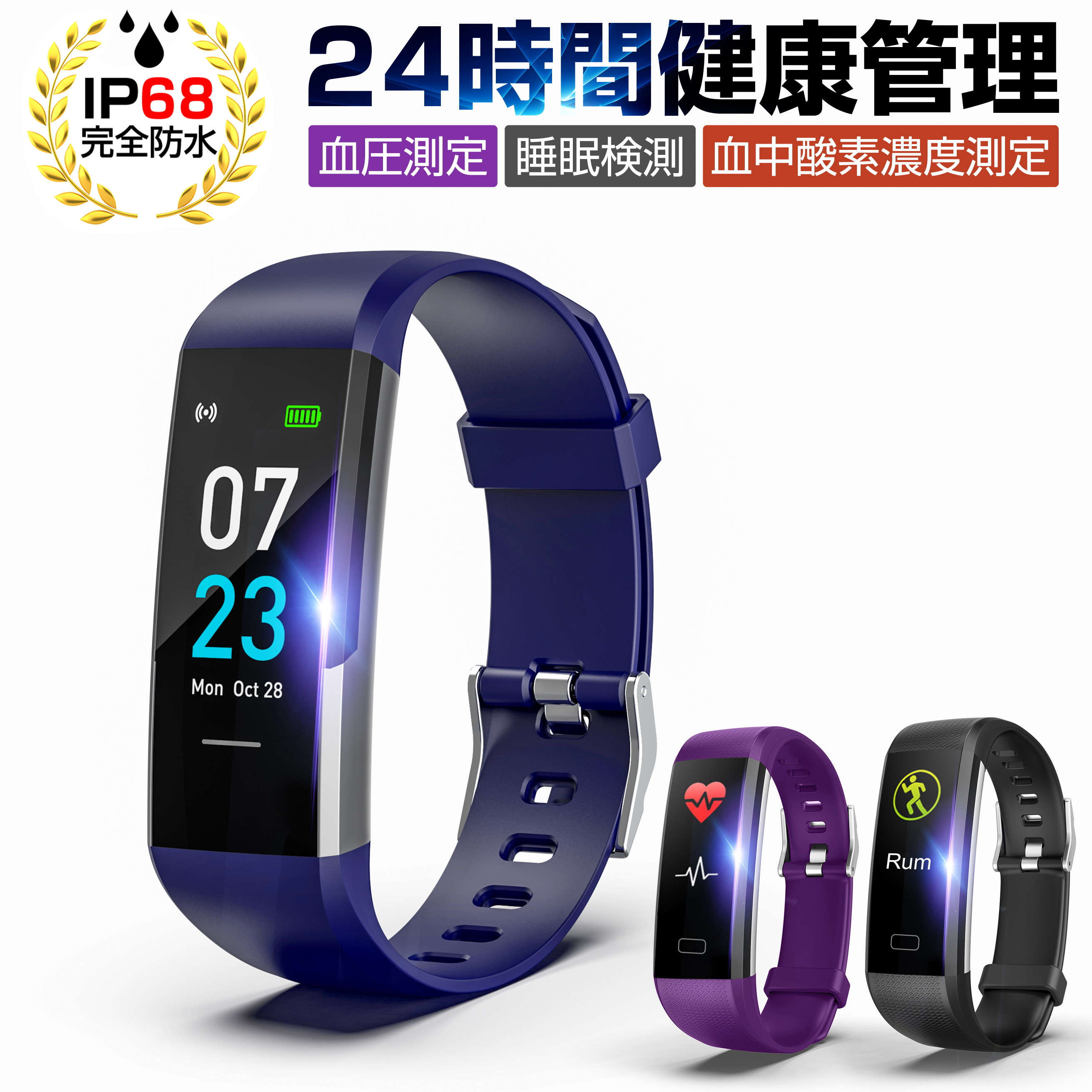 スマートウォッチ スマートブレスレット IP68防水 マルチ 防塵 心拍計 血圧計 歩数計 消費カロリー 睡眠検測 運動記録 カラースクリーン アプリ通知 アラーム 座りがち注意 健康サポート機能 腕時計 bluetooth4.2 ゆうパケット 送料無料