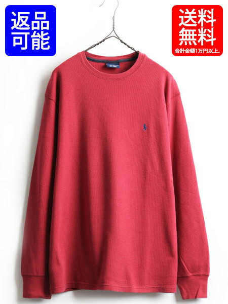 ■ POLO ポロ ラルフローレン クルーネック コットン サーマル 長袖 Tシャツ (男性 メンズ L ) ロンT 長袖Tシャツ 古着 赤 ワッフル エンジ| 【USA古着】中古 RALPH LAUREN ラルフ ワンポイント ロゴ ポニー 刺繍 無地T 無地 インナー トップス カットソー サーマルTシャツ