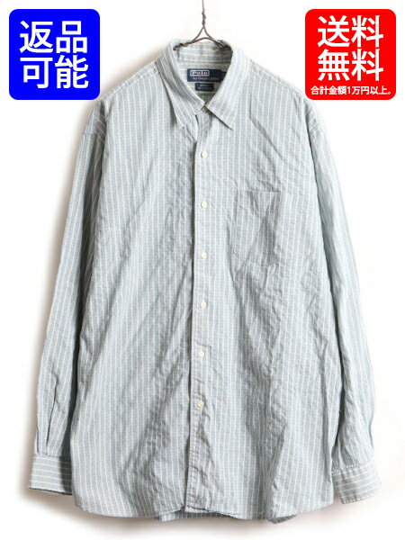 90's オールド ■ POLO ポロ ラルフローレン 織り ストライプ 総柄 コットン 長袖 シャツ ( 男性 メンズ L ) 古着 長袖シャツ 薄青 90年代| 【USA古着】中古 RALPH LAUREN 90年代 コットンシャツ トップス ライト ブルー MERRIN ストライプシャツ 柄シャツ トップス