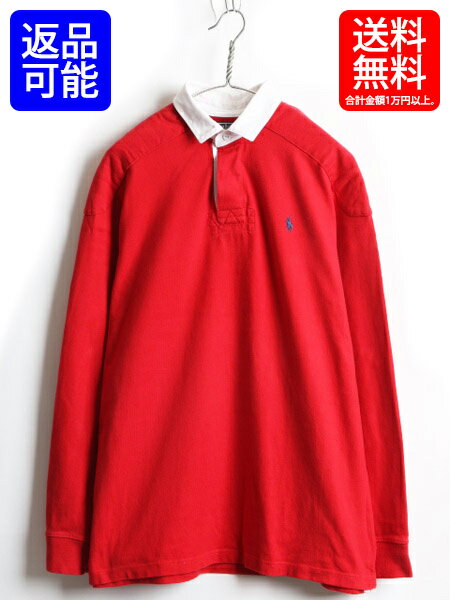 90's ■ POLO ポロ ラルフローレン エルボーパッチ 長袖 ラガーシャツ ( 男性 メンズ L ) ラグビー 古着 ワンポイント ポニー刺繍 レッド| 【USA古着】中古 オールド RALPH LAUREN ラガー ラグビーシャツ 長袖シャツ キルティング 補強 カジュアルシャツ 赤 トップス