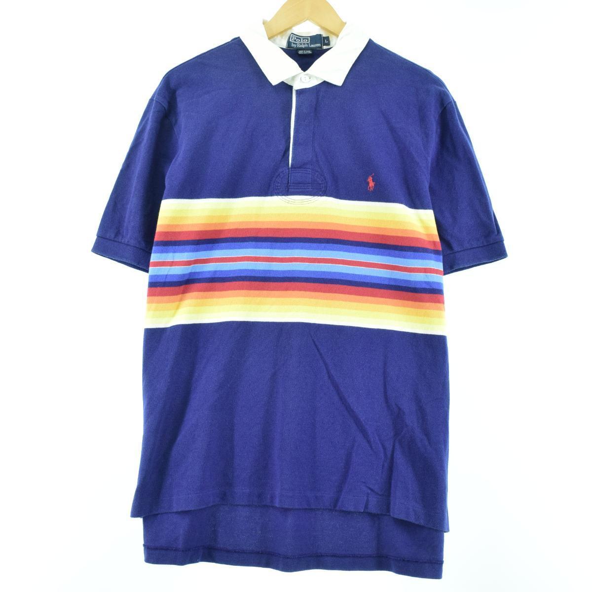 ラルフローレン Ralph Lauren POLO by Ralph Lauren ボーダー柄 半袖 ラガーシャツ メンズL /eaa038673 【中古】 【200613】