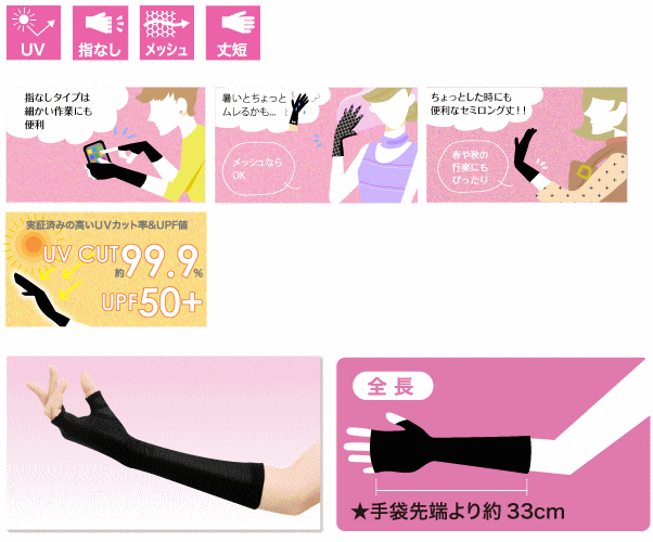 商 品 説 明 品質 本体:綿100%(UVカット加工) メッシュ部:ポリエステル 全長 約33cm UVカット率 約99.9% UPF50+ ※UVカット率には個体差がございます。